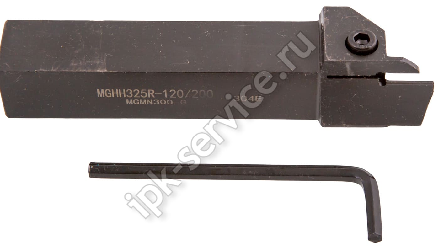 MGHH325R17-120/200 Державка канавочная наружная торцевая ИПК - державка MGHH325R17-120/200 для крупных наружных торцевых канавок. Диапазон обработки 120-200 мм. Предназначена для работы с массивными деталями в тяжелой промышленности.