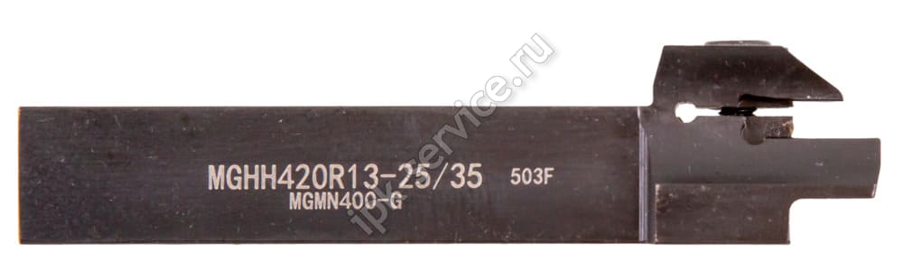 MGHH420R-25/35 Державка канавочная наружная торцевая ИПК - державка MGHH420R-25/35 для малых наружных торцевых канавок. Диапазон обработки 25-35 мм. Компактная конструкция для работы с небольшими деталями.