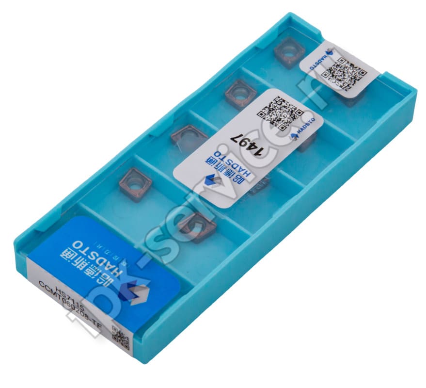 CCMT060208-TF-HS7115 Пластина твердосплавная Hadsto – пластина со сплавом HS7115, оптимизированная для обработки вязких материалов с образованием сливной стружки. Обеспечивает стабильность резания и высокую стойкость.