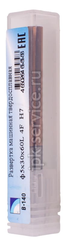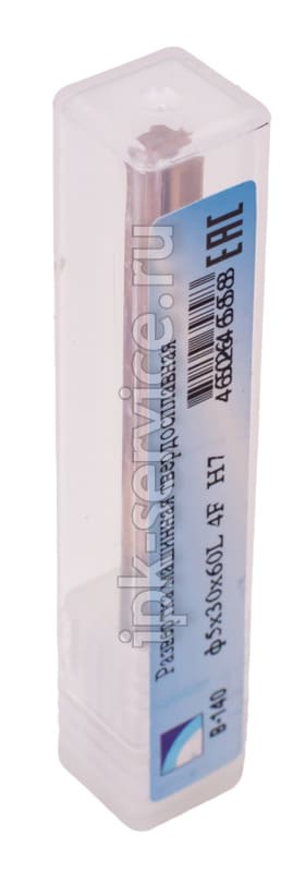 Развертка машинная твердосплавная ф5х30х60L 6F H7 - твердосплавная развертка диаметром 5 мм с шестью спиральными канавками. Длина рабочей части 30 мм, общая длина 60 мм, класс точности H7. Обеспечивает высокое качество обработки отверстий в вязких материалах.