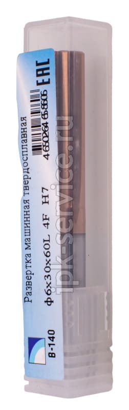 Развертка машинная твердосплавная ф6х30х60L 6F H7 - твердосплавная развертка диаметром 6 мм с шестью спиральными канавками. Длина рабочей части 30 мм, общая длина 60 мм, класс точности H7. Идеальна для обработки отверстий в закаленных сталях и титановых сплавах.