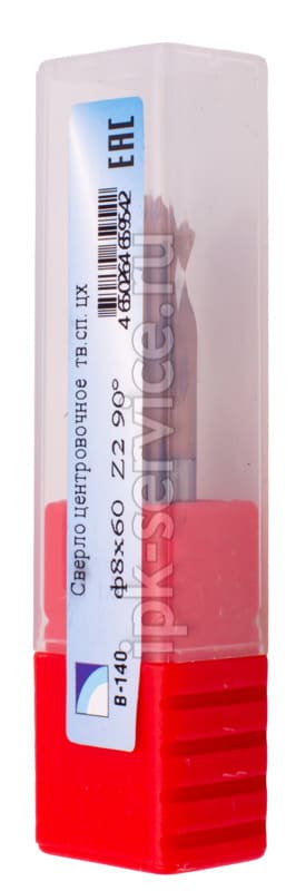 Сверло центровочное тв.сп. цх ф8х60 Z2 90º - профессиональное центровочное сверло диаметром 8 мм из твердого сплава. Цилиндрический хвостовик, общая длина 60 мм, угол при вершине 90°. Предназначено для обработки крупных заготовок из твердых материалов, включая нержавеющие и легированные стали.